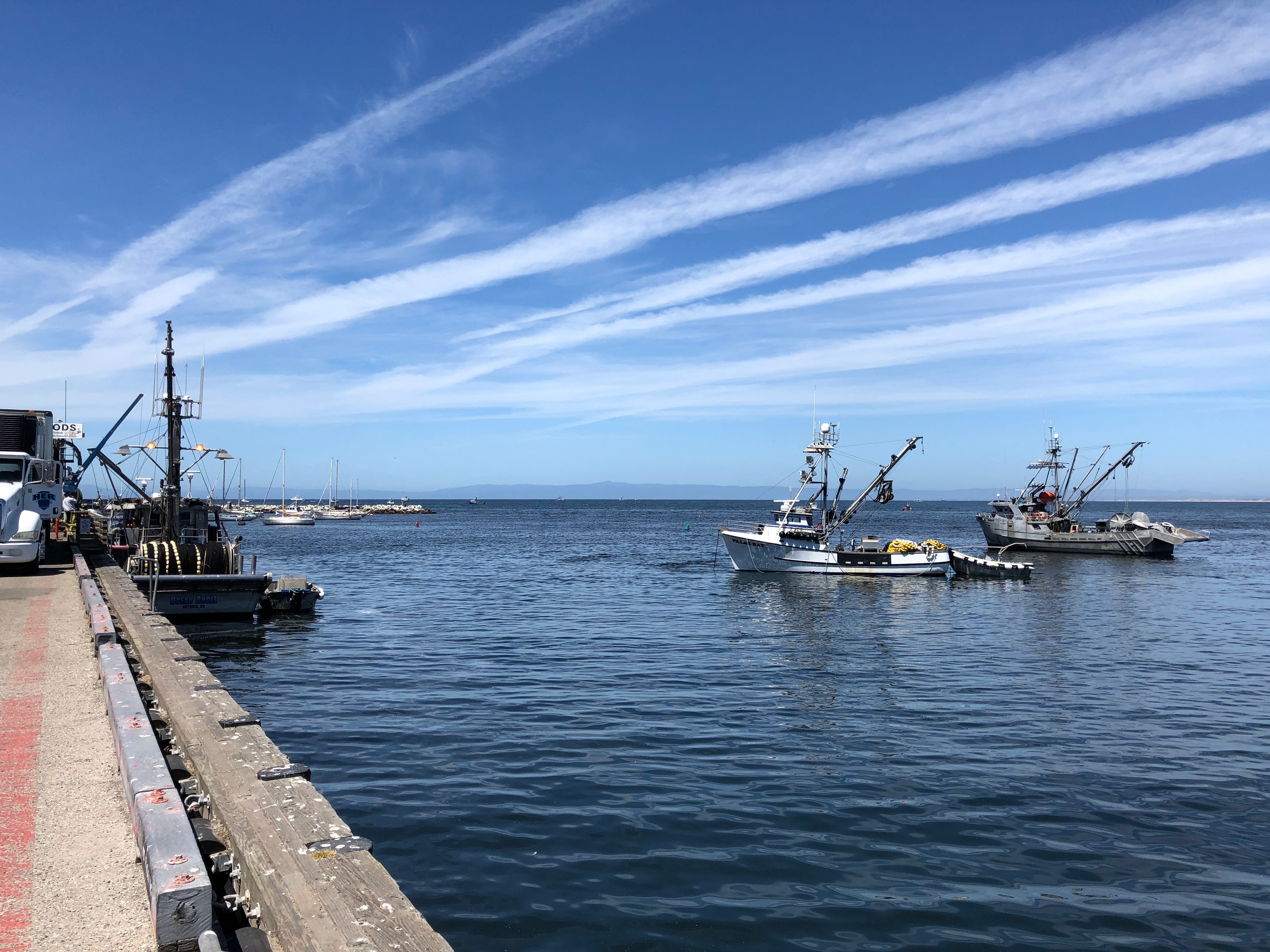 I took a bike ride out the the commerical warf to see how the fishing season is coming along. The warf was busy offloading boats, filling trucks and making ice to haul fresh fish in from the ocean and out to the processing plants. The boats have to line up to offload their catch and get fresh ice for their next catch.