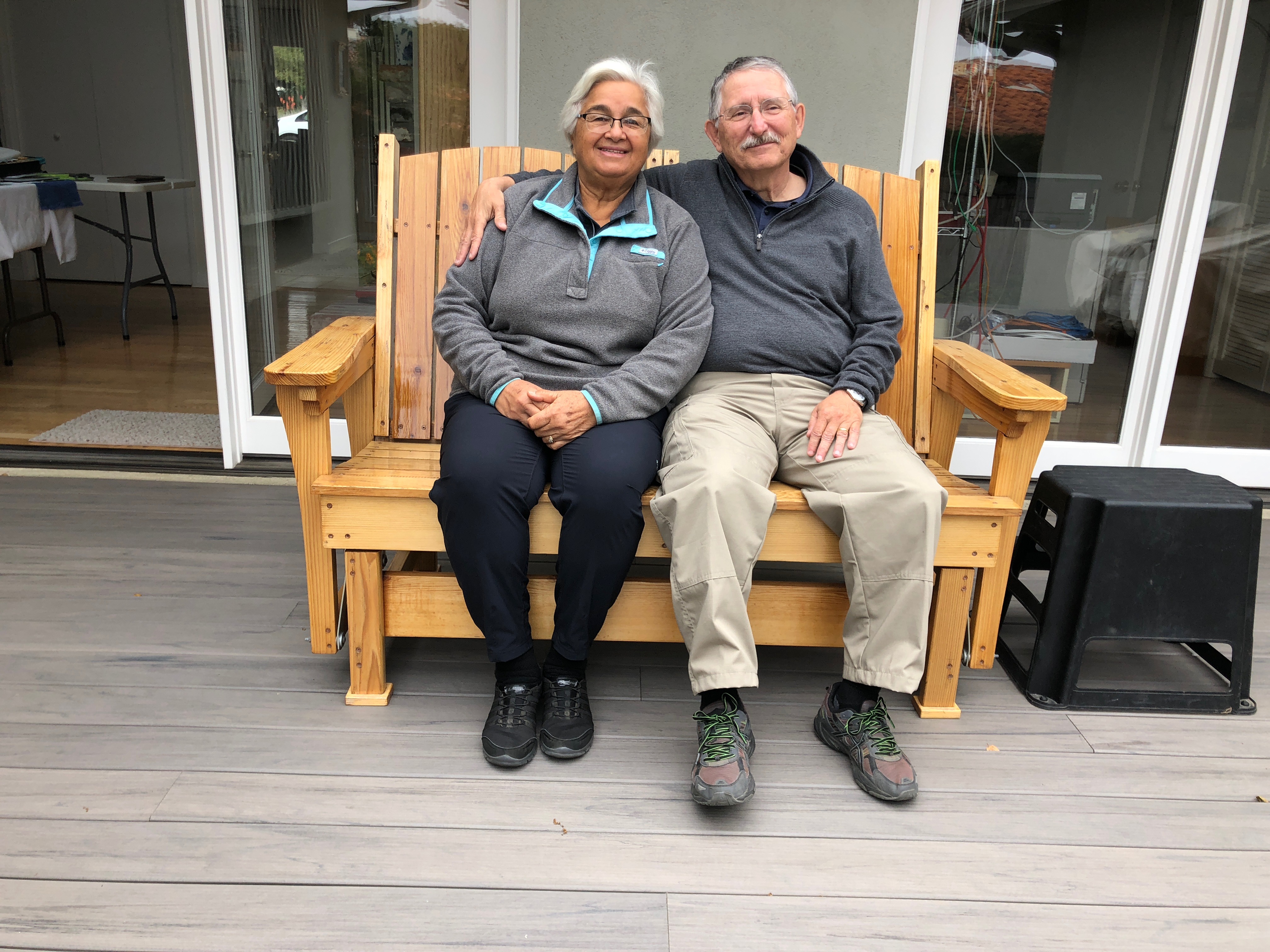 Maureen and Tom made us this Glider / Rocker bench a few years back. They're enjoying the ride out on the new deck.